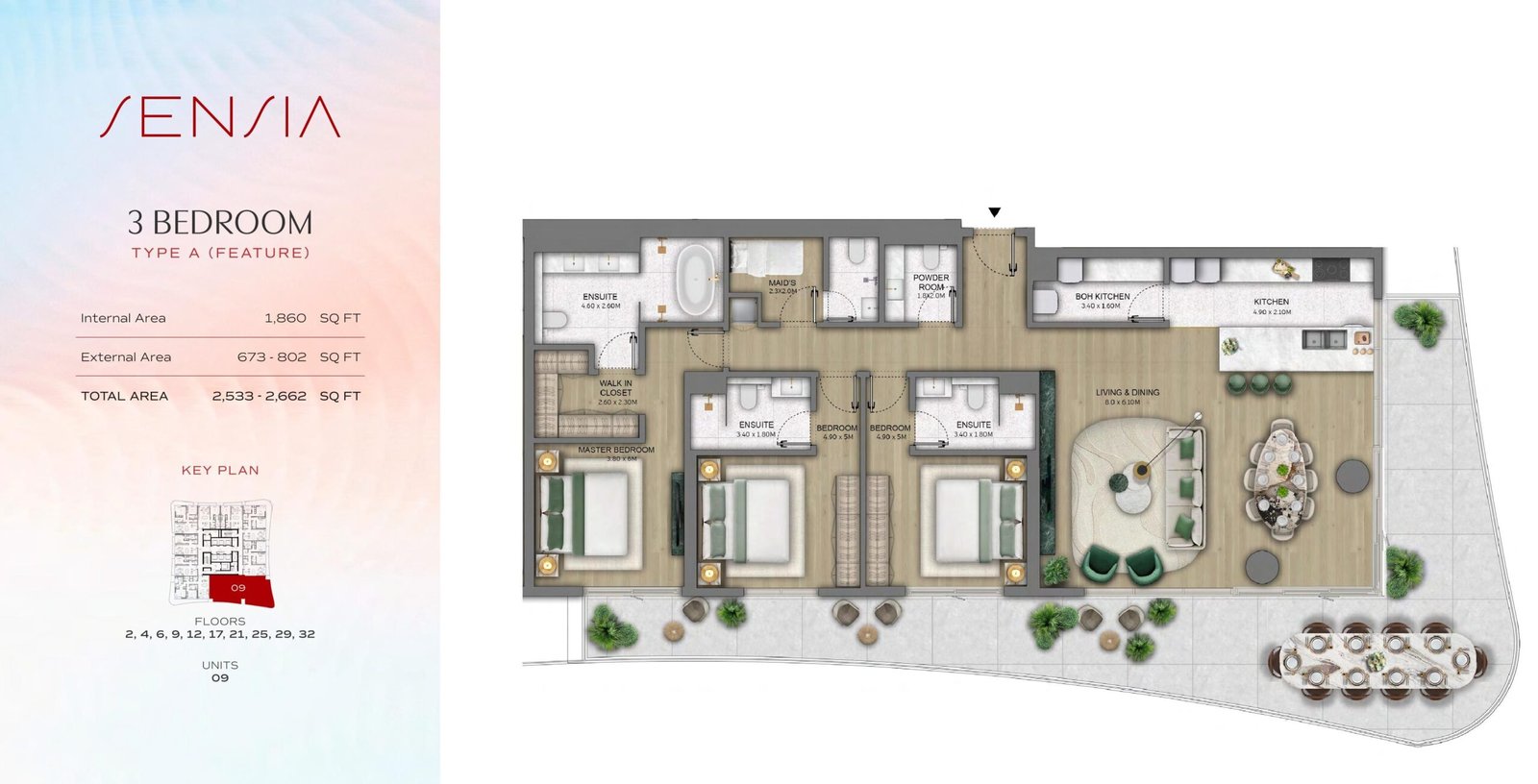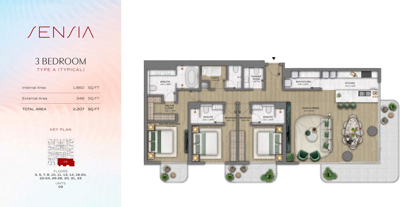 - 3-Bedroom Apartments: With sizes ranging from 1,800 to 2,200 sq.ft., these spacious apartments offer ample living space for larger families or those who desire more room for comfort and privacy.